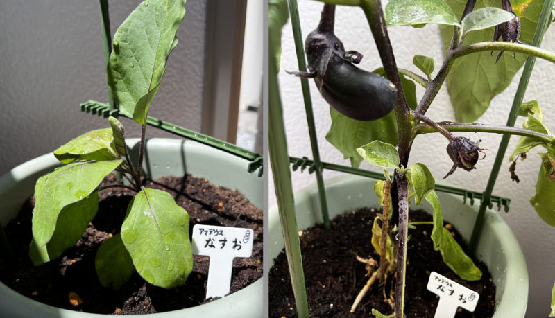 ミニトマトは豊作、甘くて美味しい実をたくさんつけてくれました。一方で、”アマデウスなすお”と名付けられた我がナスは4つしか実を付けず、おまけに1つが手のひらサイズという体たらく。あまつさえ最後の1個は熟す前に腐るという始末。