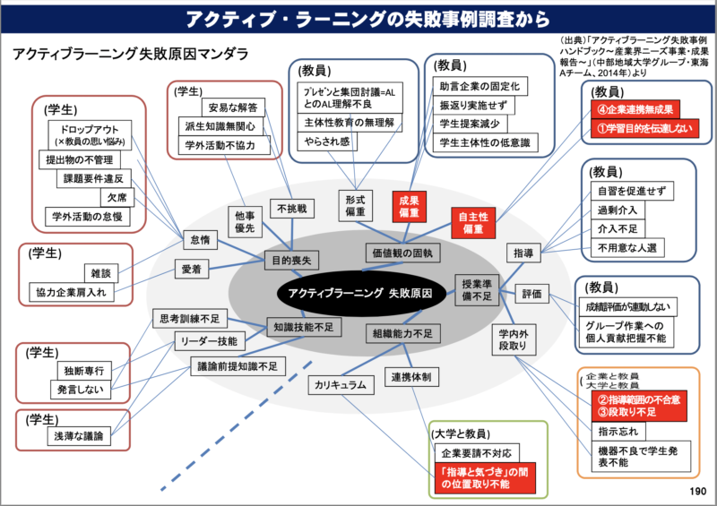失敗原因に自分たちが入っていないところに彼らの性格が現れている気がしないでもないですが、とにかくアクティブ・ラーニングに失敗例があったことは文科省も認めるところです。