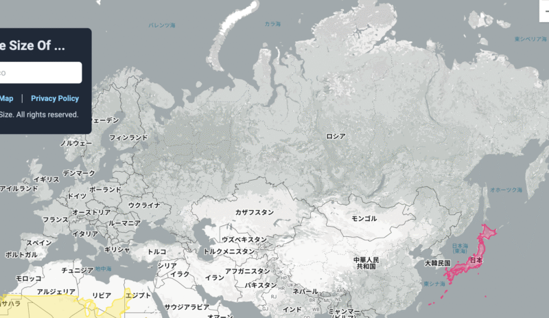 最近おもしろいサイトを見つけたので紹介します。それがThe True Size Of…。これは世界各国の実際の大きさを教えてくれるサイトです。