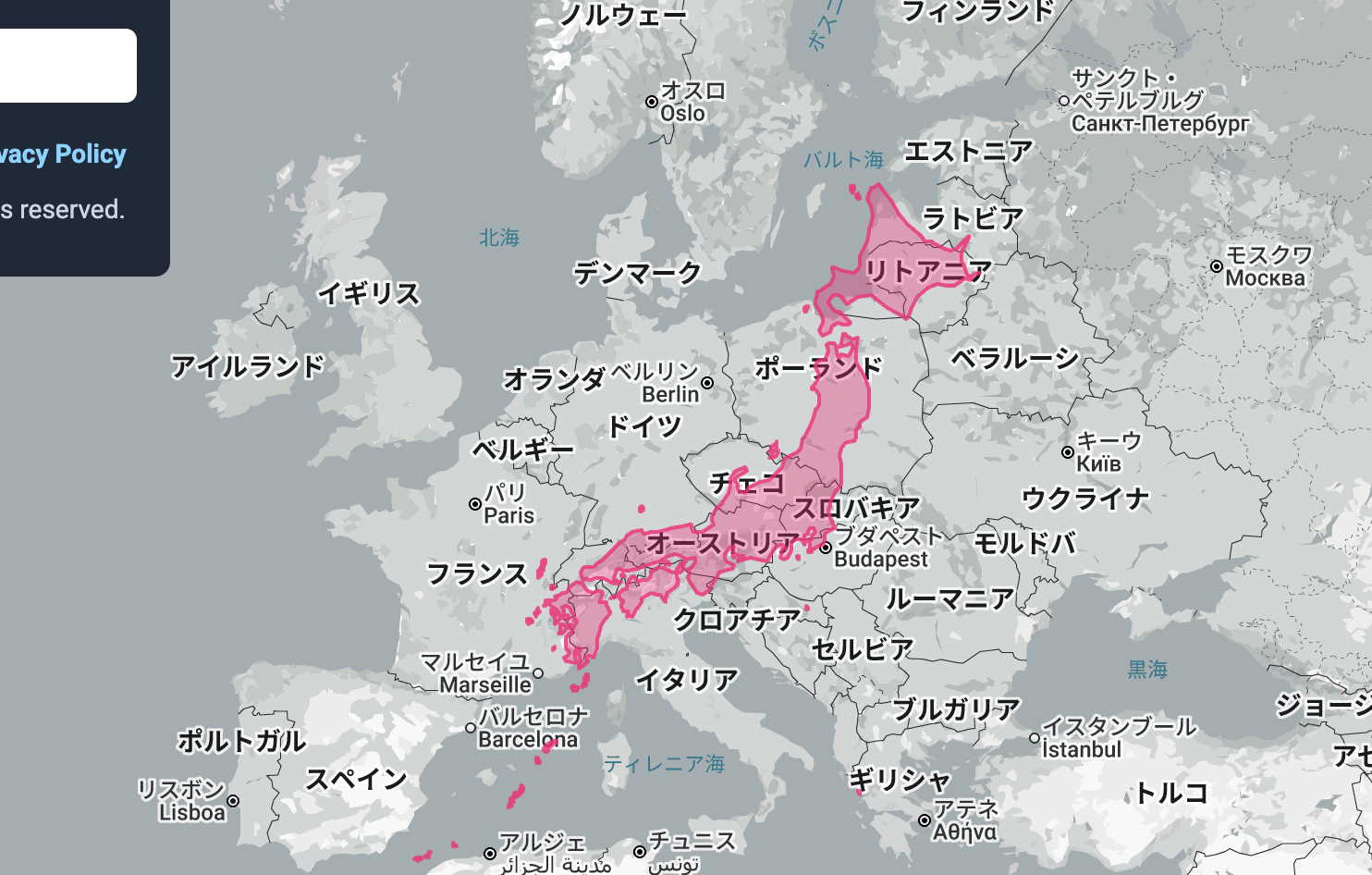 日本、大きいな笑。EU圏はパスポートが必要ないと聞いて、いろいろな国にサクッと行けて良いなぁと思っていましたが、距離でいえば意外にも県外旅行とあまり変わらないのがわかります。