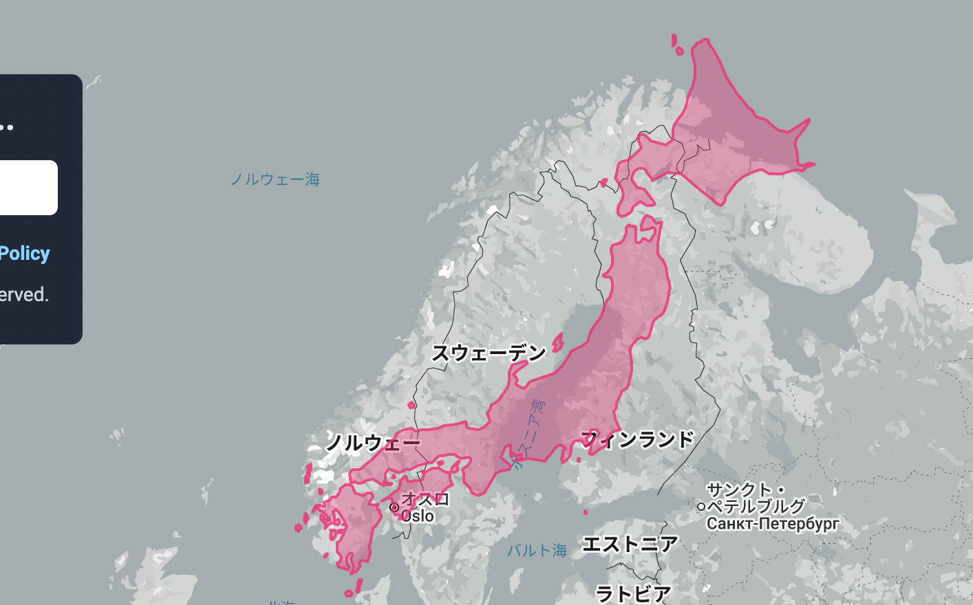 ゆえにロシアはあり得ないほど大きいし、日本は小さな島国という認識が一般。しかし、果たして本当にそうでしょうか。早速The True Size Of…で見てみましょう。日本を切り取って・・・