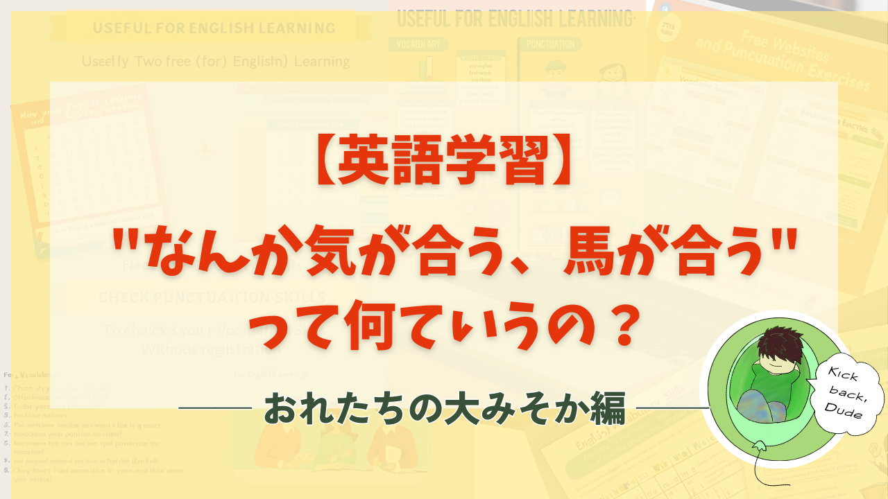 きっと皆さんにも、理由は説明できないけど心地いい関係、あるのではないでしょうか。こういう表現は単語帳や参考書にはないものの、使えると自然な会話に近づく魔法のスパイスでもあります。皆さんも是非使ってみてください:)では。