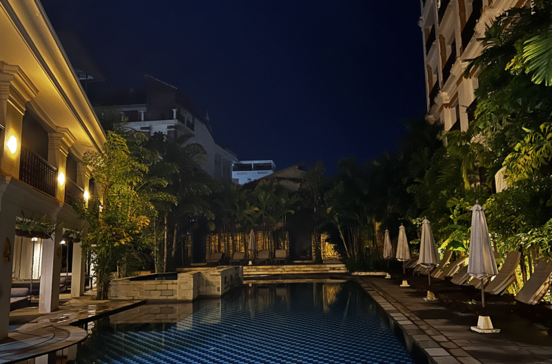 市街地にありながら落ち着いた立地、優しいスタッフ、そしてアンティークな部屋。外にはライトアップされたプールもあり、映えるホテルでしたね〜。