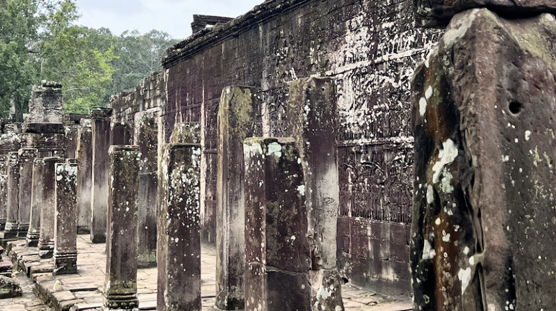 また城壁には当時の様子を描く壁画。回廊の屋根は崩れてしまっていましたが、壁に掘られた芸術は後世へ語り継ぐに足るクオリティ。とても立派な寺院でした。