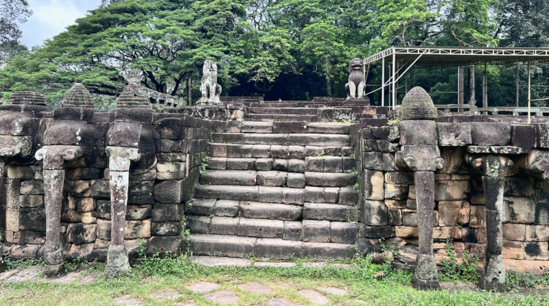象のテラスの向かいには兵士の休憩所となったタケノコのような石塔。間を歩きながら当時の様子をイメージしていました。