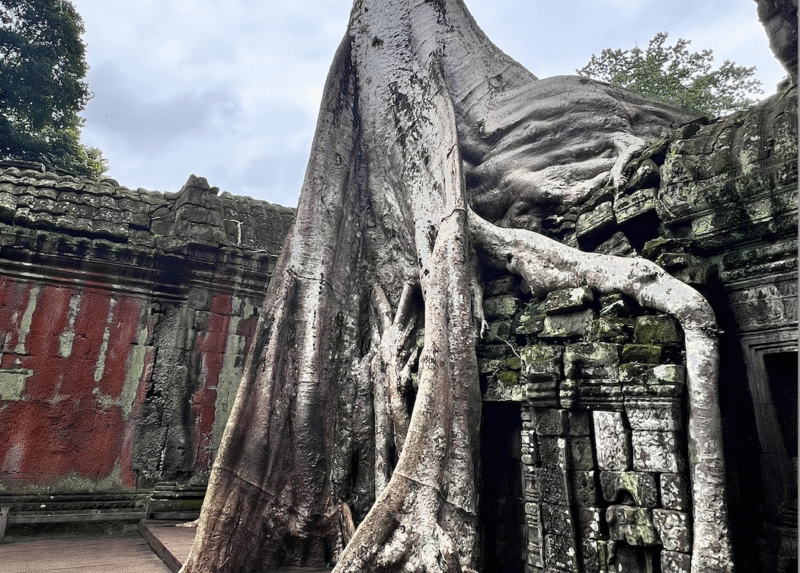 実は、ガジュマルが絡みついた場所はたくさんあり、そのどれもがユニークで見ていて全く飽きなかったです。また、緑の風景は雨季ならではだそうで、乾季の姿も気になりました。