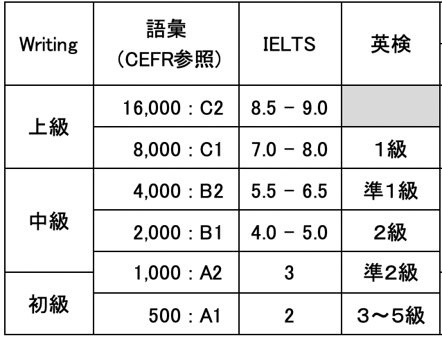 16,000語の語彙をしたがえていれば、理屈上は、IELTSだろうが英検だろうが最上級のライティングが書けるということになります。